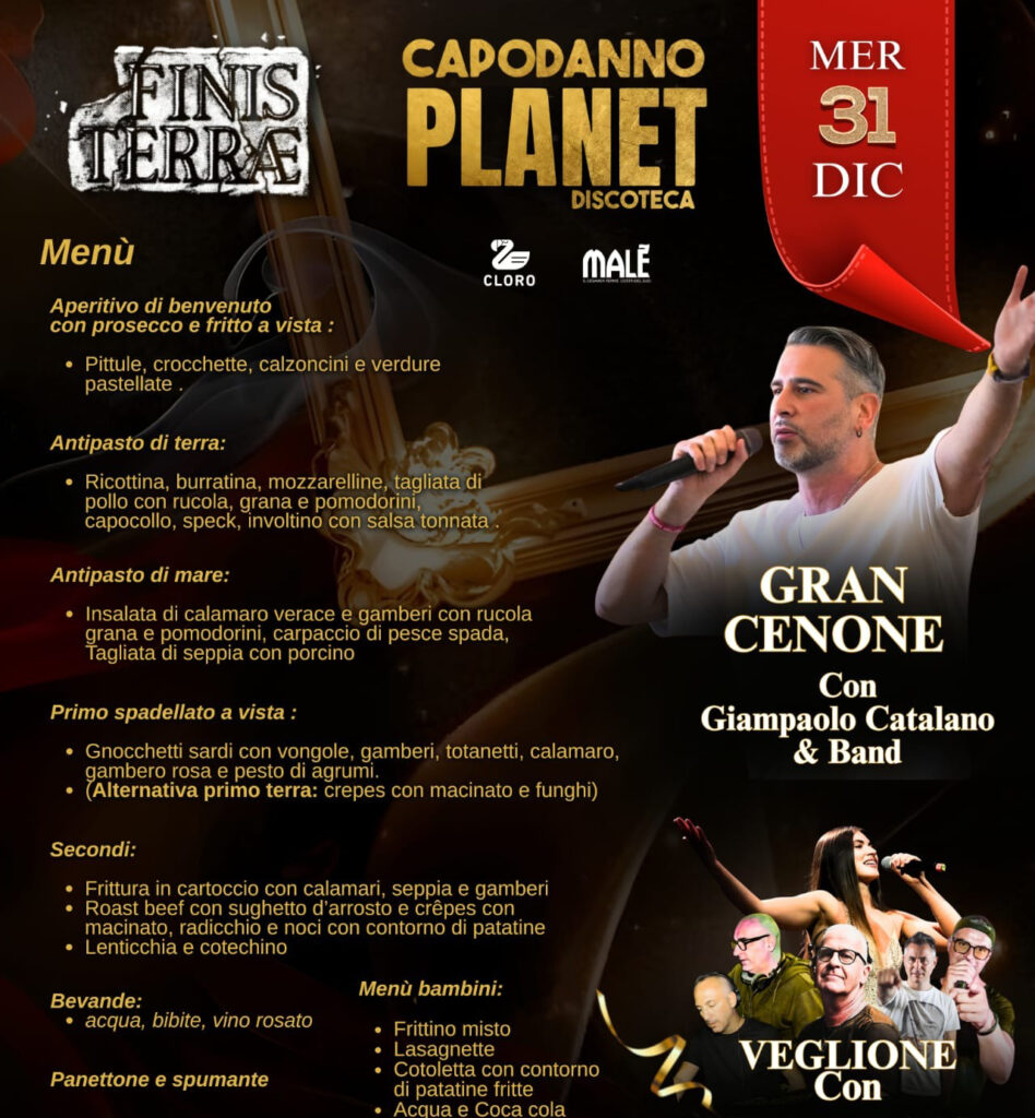 Mercoledì 31 dicembre 2025 il Finis Terrae si trasforma nel palco ideale per salutare il nuovo anno con stile. La serata si apre con il gran cenone, un momento conviviale pensato per chi vuole festeggiare intorno a un buon tavolo, seguito da un veglione carico di musica ed energia.